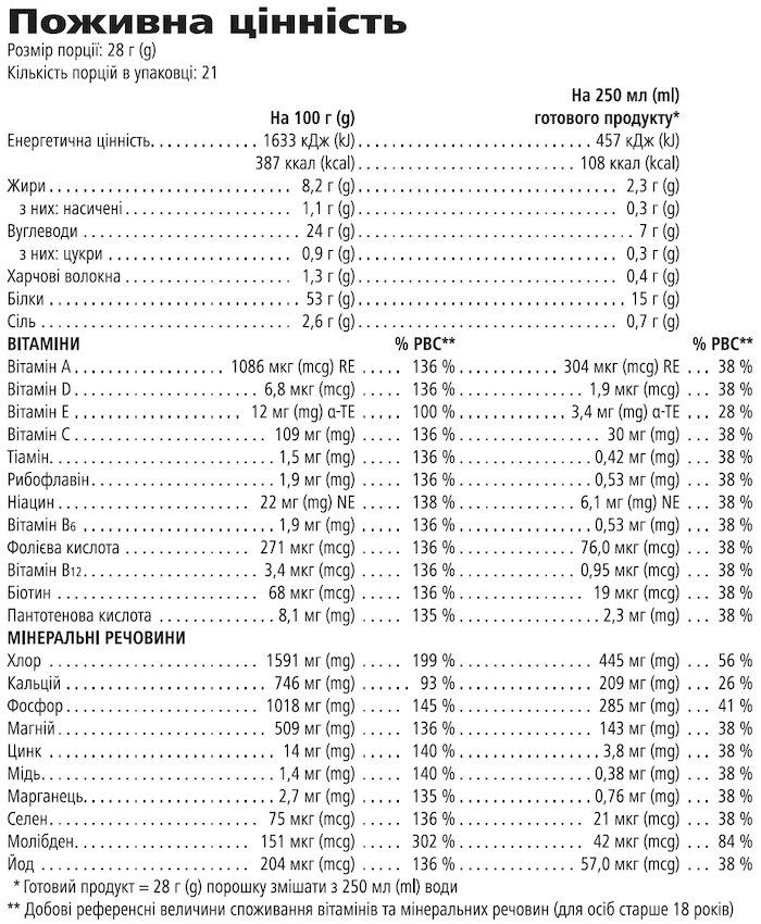 Насолоджуйтеся Protein Drink Mix як самостійним високобілковим перекусом, кожна порція з двох мірних ложок якого містить 15 грамів якісного протеїну та 22 ключові вітаміни і мінерали, або додавайте його до улюбленого коктейлю чи смузі, щоб отримати додаткову порцію білка.