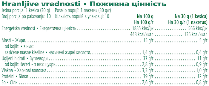 Приготована корисним методом, ця пікантна закуска містить на 50% менше жиру у порівнянні зі смаженими картопляними чипсами. Кожна упаковка швидкого перекусу наповнена смаком, містить багато білку та не містить глютен.